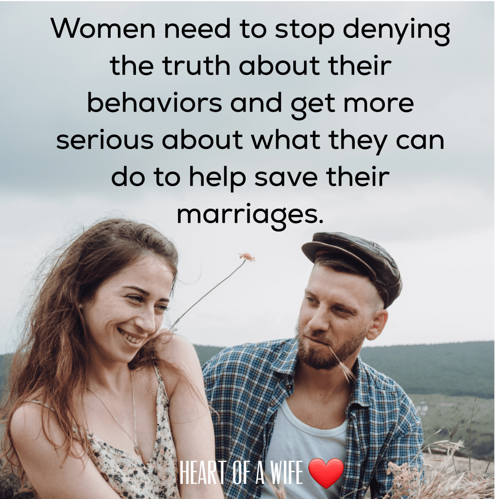 Women need to stop denying the truth about their behaviors and get more serious about what they can do to help save their marriages.